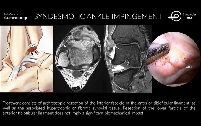 Impingement of the distal fascicle of the anterior tibiofibular ligament or Bassett ligament. Repetitive friction with talus can lead to ligament thickening, focal synovitis, fibrosis, and abrasion to the articular cartilage of the lateral aspect of the talar dome.
