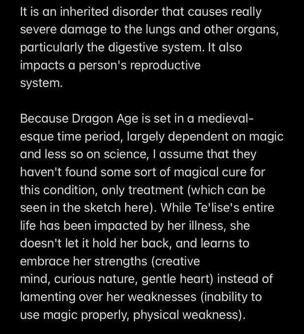 After much deliberation, I’ve decided that Te’lise’s chronic illness will be largely inspired by Cystic Fibrosis (CF).