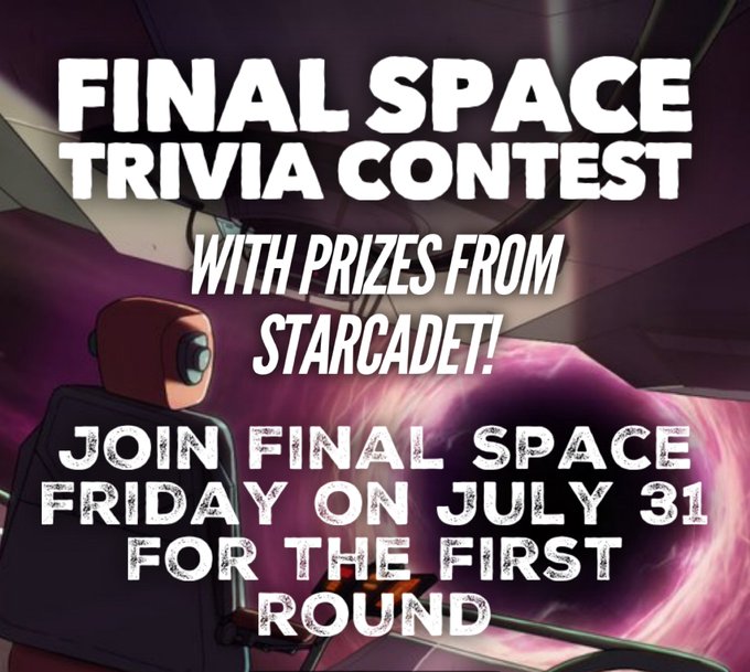 Very excited to announce that @FinalFacts + @IntoFinalSpace have partnered with @starcadetco to bring you a Final Space Trivia contest and the winners will receive some FS merch!! Join the next #FinalSpaceFriday to join the contest! #FinalSpace #Fantrexian