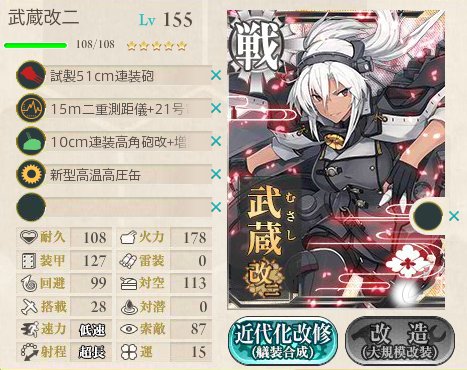 帝国海軍戦艦武蔵改二改装完了。