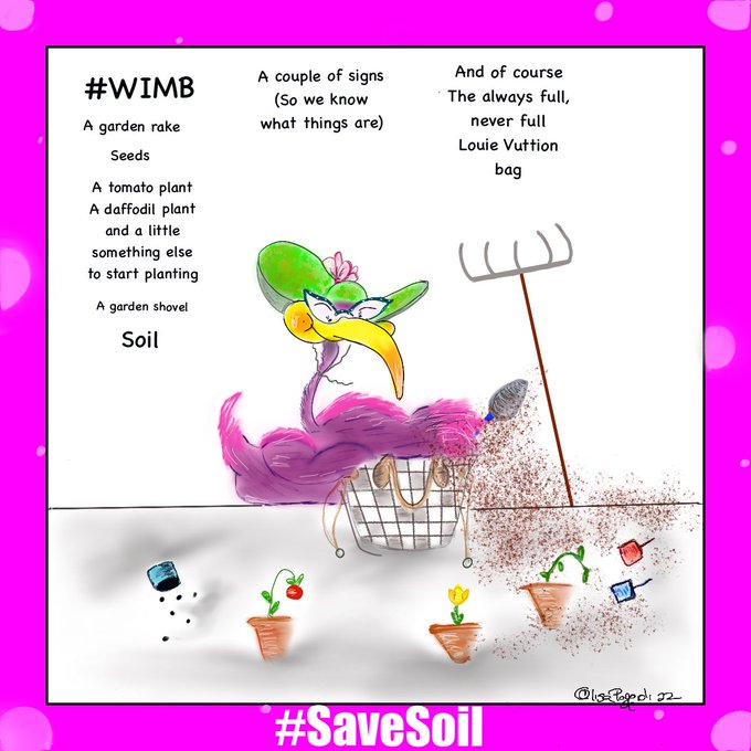 Violet the Purple Flamingo’s first ever #WhatsInMyBag ! She has been itching to do one ! Hope Everyone likes it 🤞🏻 Wishing Everyone a Flamingtabulous Friday!! 🦩👜💜… One more for the #SaveSoilMovement . 🌏🌾 #LoveViolet #WIMB #Cartoon #HappyFriday #CartoonistofTwitter