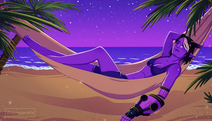 Just a pretty Tiefling artificer resting at the beach... 😊 A commissioned work for @/NotFrankTurner!