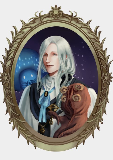 @GreenOvium Here's my Bloodborne oc Fyn. He's the choir intern. He hated his job and the organization. But he actually enjoys taking care of these cosmic babies.