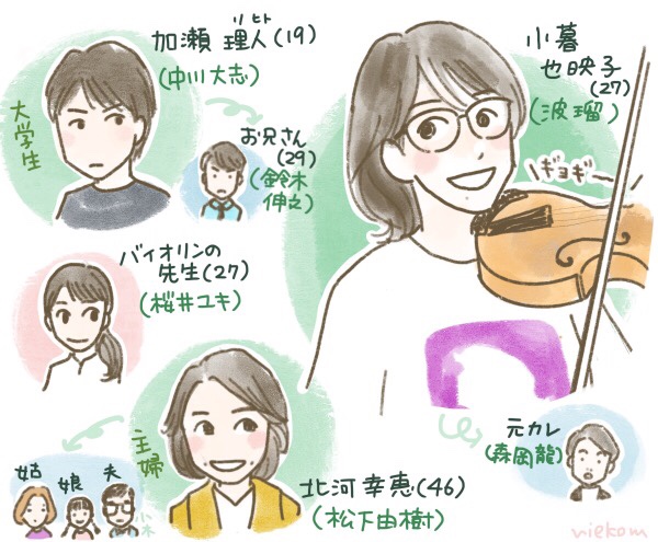 立場の違う3人が大人のバイオリン教室で出会い、親交を深めていく様子が何とも面白い!也映子ちゃんと理人くんの胸キュンエピソードに毎週やられてました笑