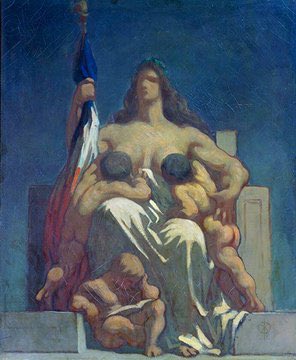 Daumier, despite his establishment detractors, was a true patriot as shown in his monumental & stirring image of the Republic. The Fifth Act at the Gaiety Theatre (1848), The Republic (1848), The Uprising (nd) & Martyrdom of St Sebastian (1849-52)