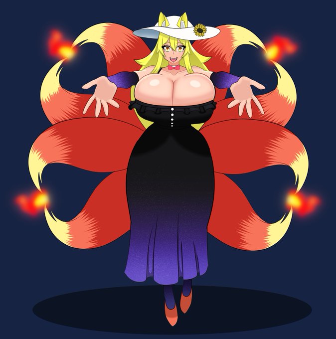 Commission for @TheGLibrarian where the two of us worked together to create a new fox girl OC named Sunflower! She's a personification of a sunflower galaxy, and is a kind soul who's ready to burrow your face in her chest for a hug.