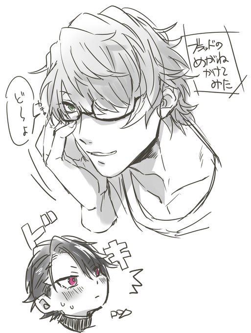 おまたせしましたー! リクエストいただいた「ブラッドの眼鏡をかけてみたキース、なキスブラ」です!きっとにメガネも似合う…😎ありがとうございましたー! #GaLetteエアスケブ