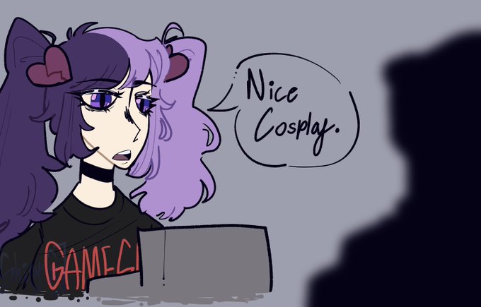 new pair of ocs i created, ones inspired by lolita goth and works at Gameshop and the other is secretly a robot superweapon by the U.S Air Force that wears gear 24/7 and doesn't know he's a valuble asset