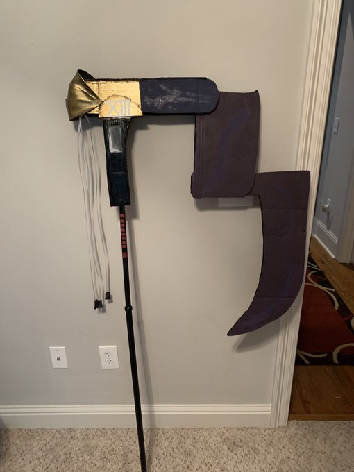 It’s complete! Progress update on my scythe for my juuzou suzuya cosplay. Dragoncon is right around the corner! 1 prop down, 2 more to go. #gammaraecosplay #gammarae #blerd #blackgirlmagic #otaku #blackcosplayers #poccosplayer #anime #dragonconcosplay #concrunch #tokyoghoul