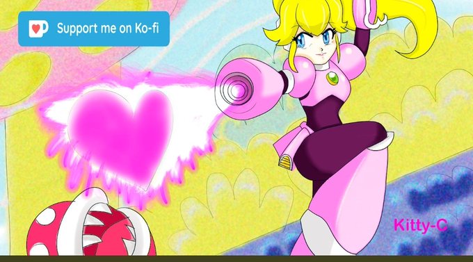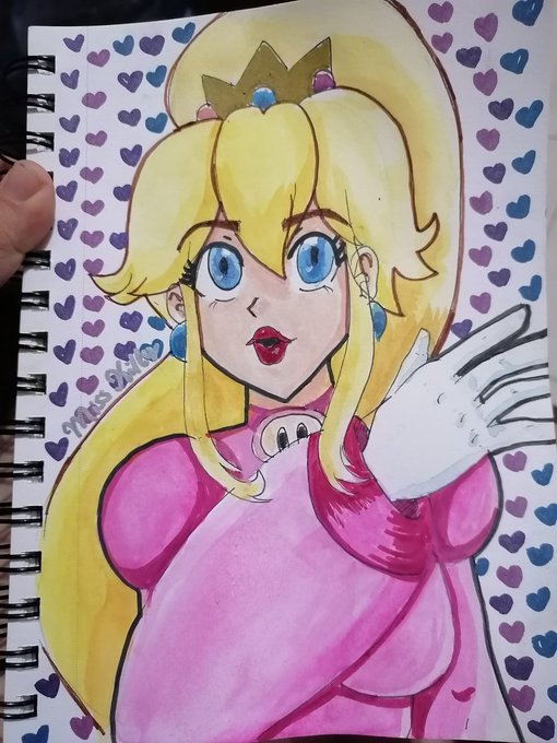 La versión 2021 de megapeach y en téctica mixta con #acuarella #plumones #peach #princesspeach #MarioPartySuperstars #Nintendo #MegaMan