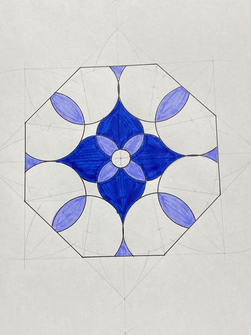 Day 3 #GeometrySketchbook another fourfold design from #CircleGC with @c0mplexnumber Trying to improve my painting technique. #GeometricArt #MathsArt #CircleGeometry #SketchADayJune