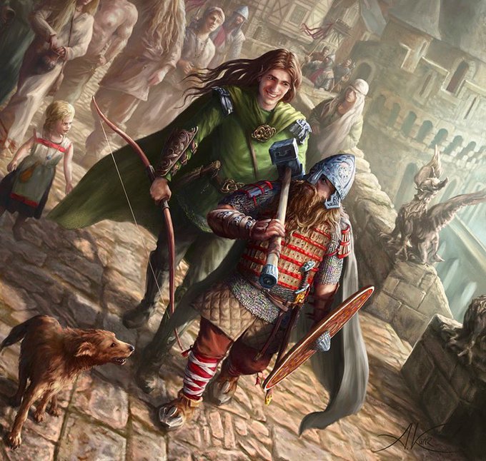 The “Unlikely Friendship” that meant so much to their races! The Lord of the Rings Card Game has some of the best art made for it! (Art by Aleksander Karcz)