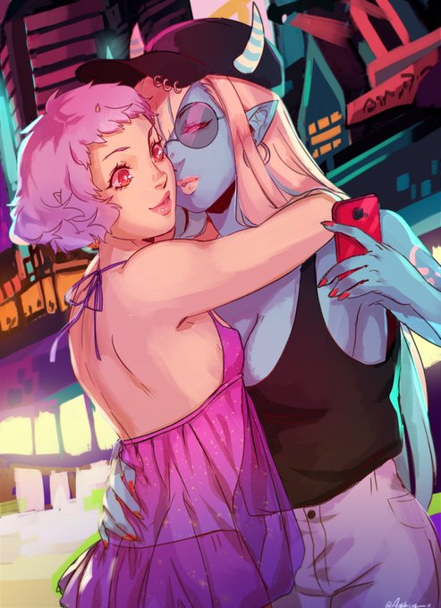 beautiful work done by the great @gato_iberico ! Absolutely wonderful person to work with! Pls consider supporting them on their patreon and reading their comic #tiefling #aasimar #girlfrands