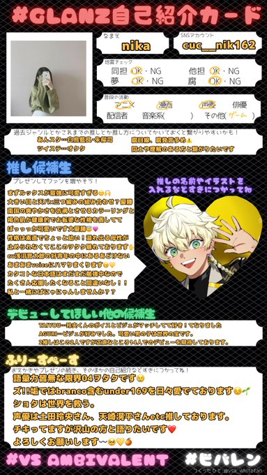 #ビバレン待機組と繋がりたい #ビバレン好きな人と繋がりたい #ビバレン私のpickはこれ #GLANZと繋がりたい #GLANZ自己紹介カード #vsa_kazu