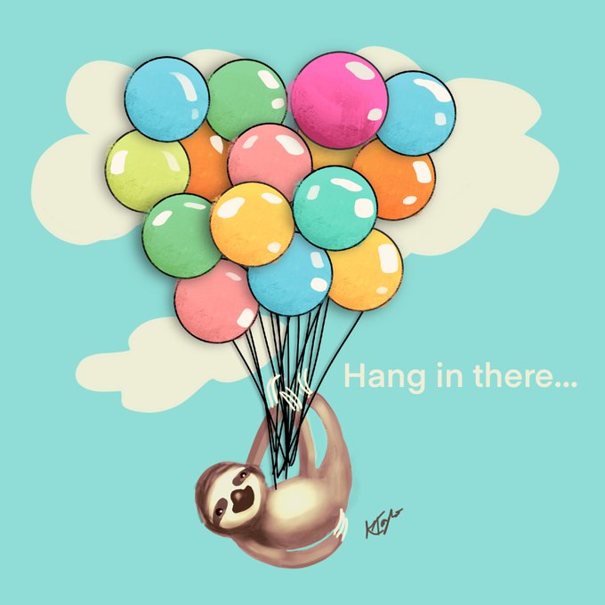 Hang in there... a little finger drawing on my iPhone X in pocket Procreate. I might redo in a larger scale and make available as #prints what do you think? 💓 #sloth #sloths #balloons #hanginthere #goodwishes #wishyouwell #karintaylor @redbubble @redbubble_fr @redbubble_de