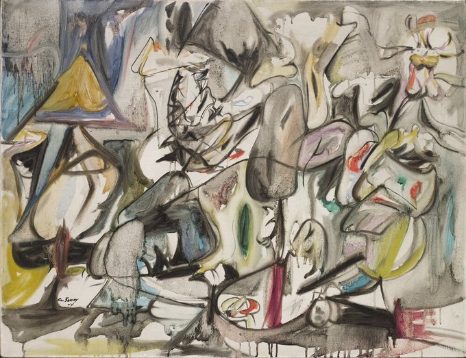 Day 1025 #ArtKicksCovid19 "Grey Fireworks" (2000) Helen Frankenthaler. Private Collection. Frankenthaler’s brilliantly coloured canvases were admired for their lyrical qualities. Influenced by Gorky and Pollock, she was a member of the second generation of Abstract Expressionists