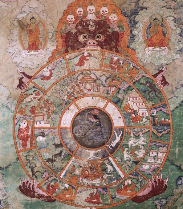 #HappyGroundhogDay! Did you know the movie Groundhog Day can be viewed as Buddhist? Phil Connors finds himself stuck in a time loop, similar to the concept of samsara. Depicted here is the Wheel of Life, a Tibetan Buddhist visualization of this endless cycle.
