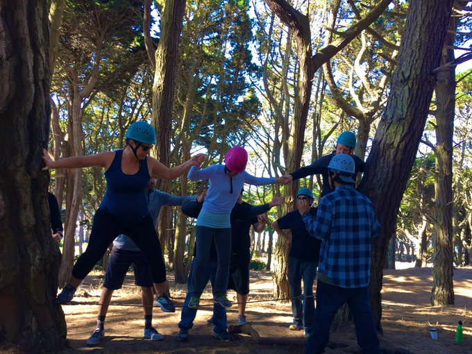 #Play isn’t just good for kids. Adults thrive when they have the time/space to explore & INTERACT w/each other in new ways. Scaling ideas across schools means helping staff know each other! (Ropes course PD) #GSPD2019 #innovation #WorkLifeBalance #Collaboration #FridayMotivation