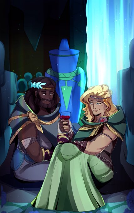 Merry Holidays And Happy New Year #HadesKeepsakes21 ! Here's my gift for @feuxx_ ☺️💗💗💗 Charon and Hermes sharing a drink in Elysium~