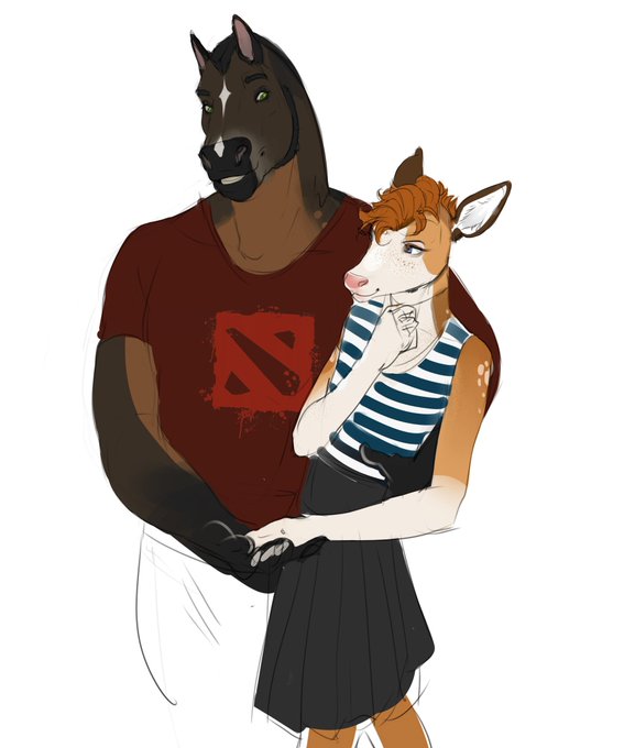 New characters are Deer Jim and Horse Tod. Friends of Nick and Lou, my bulls. Jim is a model, make-up artist and beauty blogger, and Tod is a letsplayer and streamer. (tod is a former hairdresser, still styling Jim and Nick with Lou out of friendship)