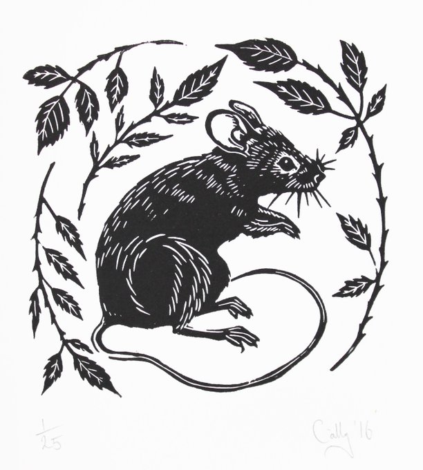 So that's who ate them all!! This little handcarved and printed Field Mouse is surrounded by blackberry leaves. A charming black and white linocut by #printmaker Cally Conway. Part of an edition of 25... https://t.co/rKagD8YIH4 #linocut #linoprint