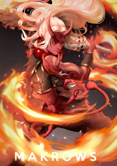 Did an illustration for my Red Oni girl, called her 无情,which means heartless, since she is an barbarian oni who fights for pleasure.