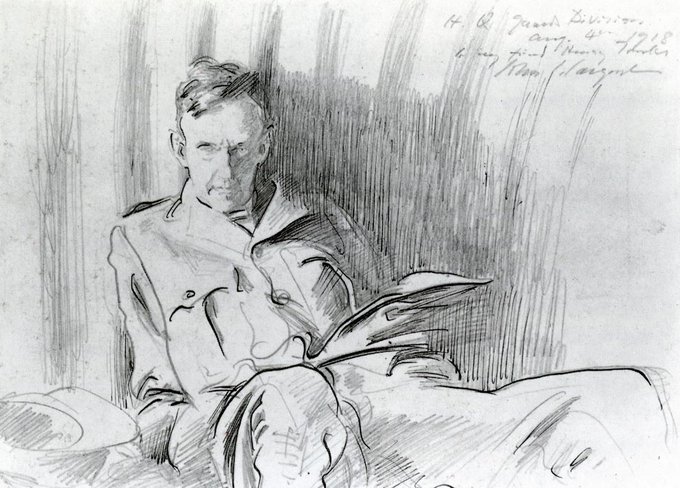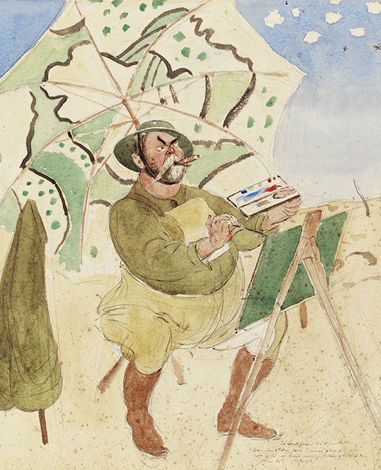 #Sargent drawing #HenryTonks, who in turn paints Sargent. Not sure that camouflage brolly would have done much for hiding his rotundity ;)