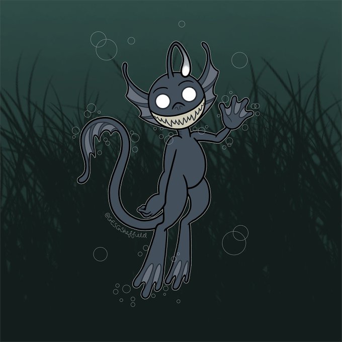 Just a friendly lil' water beastie. Nothing to see here. He won't lure you down below the surface and then snatch you away. Honest. #waterspirit #folklore #hookland #staybelow #reenchantmentisresistance #illustration