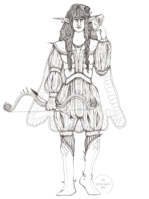 Eildi Dwyn’dlue, my feymaster ranger elf + her fairy companion, Marion for a #dnd oneshot 🥀