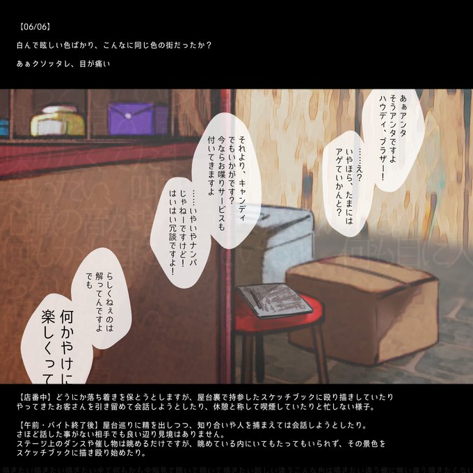 バイトで店番したり自由時間に屋台巡ったりスケブ殴り描いたり色々。フォロー内外問わず、背景等々お好きにどうぞ