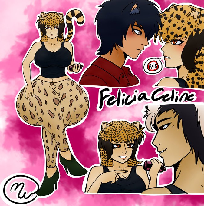 A picture of Felicia Celine, a cheetah girl who is unusually chubby compared to average cheetah girls. She makes up for for her lacking running speed by biking & driving really fast.