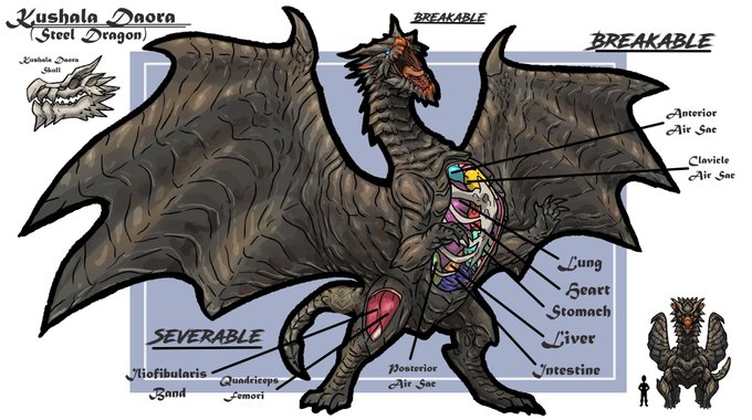 The Steel Dragon, Kushala Daora, is an elder dragon that has metallic scales and is able to create tornadoes by flapping its wing as well as spewing balls of winds. It's speculated that they create storms and hurricanes, but that is still unsure. #KushalaDaora #MonsterHunter
