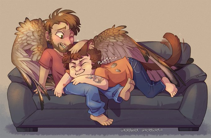 #art #artwork #drawing #digitalart #artist #kirawra #rthybridau #birdgavin #catmichael #mavin #ragehappy #wings #cute #cuddles #fluff
