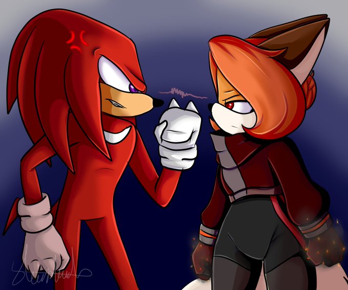 Ruby and knuckle's first encounter isn't a great one. Knuckles is ready to fight Ruby since she is working for Eggman. I tried to show that Ruby's fire was starting by making smoke and embers coming out of her closed hand.