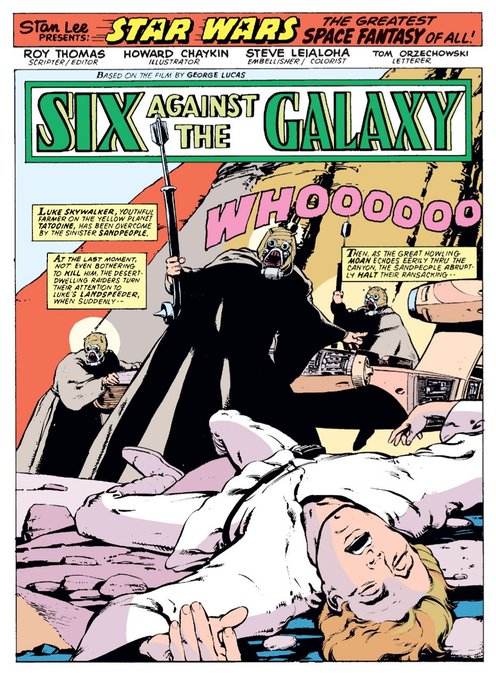 5/10/77: STAR WARS fans who knew enough to be on top of the Marvel's adaptation were already well aware of one-third of the story before the movie ever opened. It would take 6 parts, and eventually the series would wind up in the hands of the astonishing Goodwin/Infantino.