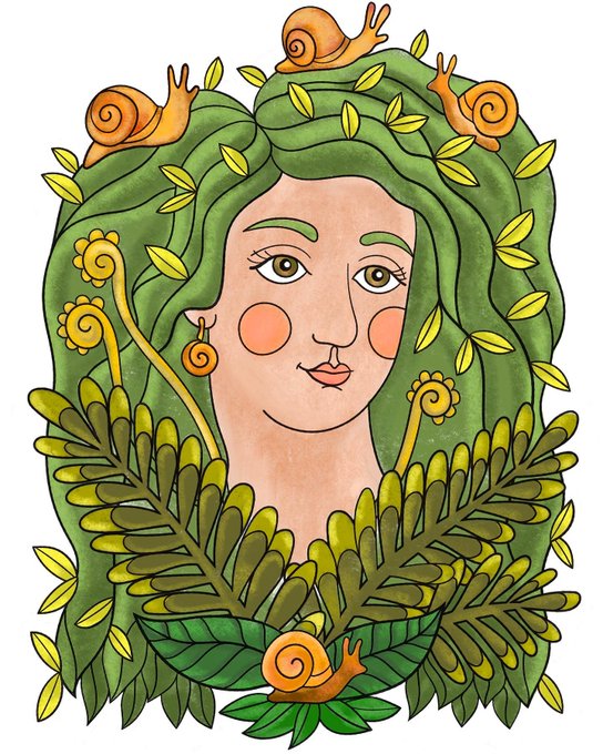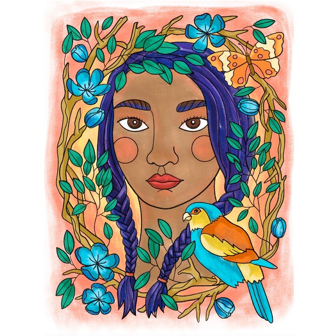 Another Procreate color of a page from #FacesintheForestColoringBook