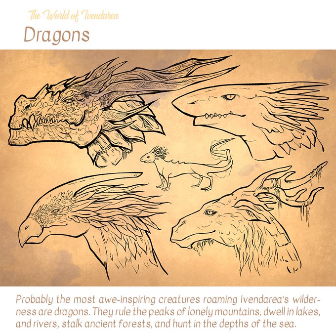 Dragons come in many shapes and sizes in Ivendarea, roaming mountains, forests, jungles, rivers, and even the oceans surrounding the peninsula.
