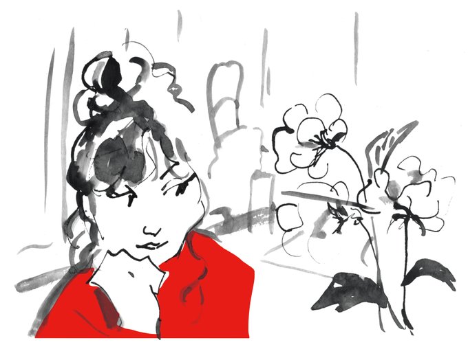 Croquis rapide du matin, amants sous le soleil, techniques mixtes sur papier. RIP Jean-Paul #Belmondo