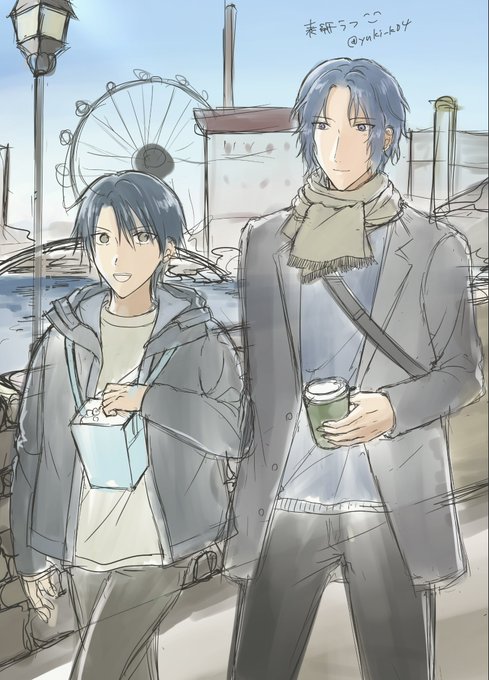今年もあと80日。昨日と今日の分。 ゆきりょというか頂上?💛💙 さんりおキャラを50億年ぶりに描きました🙏 #kaichi_draw