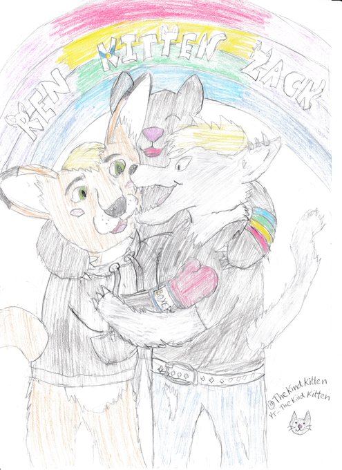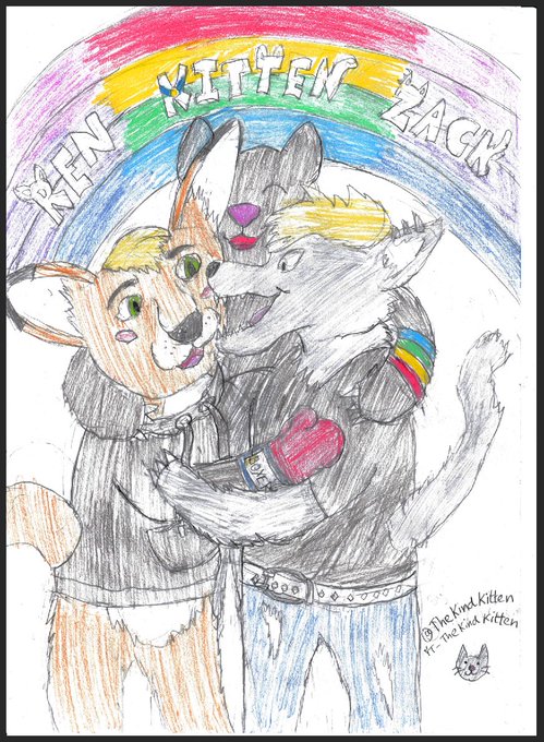 Oh my gosh! @DyotoOrion /@TheMythRealm boosted the contrast/saturation of the original picture to make it look much less 'washed out!Ty! @Zack_Grey_ @renegade_roo #furry #furryartist #furryart #furryartwork #furryfandom #drawing #ArtistOnTwitter #artwork #kitten #wolf #kangeroo