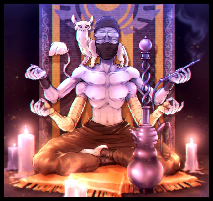 I accidentally deleted the first time I posted this, riPP;; here we go again with our #Starfinder party's Kasatha Mystic, chillin with his animal familiar!