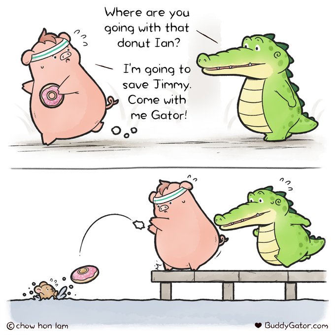 #BuddyGator #heartwarming #Comics #漫畫 #aww #挿し絵 #Alligator #cute #Gator #kawaiiオフショット #donut #donuts #piggy #mouse