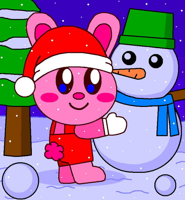 #bunnykirby #kirby #princefluff #kirbysepicyarn #MerryChristmas #snow #snowman #nintendo #bunnyboy