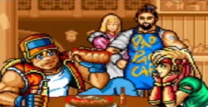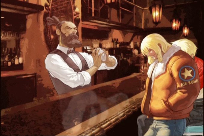 初代餓狼で初登場したカポエラの達人で、テリーたち格闘家の集うパオパオカフェのマスターでもある。初代餓狼以来弟子のボブに出番を譲っていたがKOFMI2で復活しているぞ!(テリーから飲食代のツケを払わせようとする)彼の作るホットドッグは非常に旨いとのこと https://t.co/AwxdZr4ICP