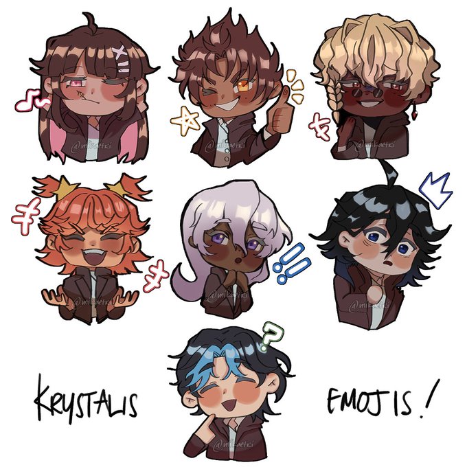 little emojis of my ocs i made back in the summer ^^ they belong to my oc uni called krystalis (academy) and are the main 7 students! squish