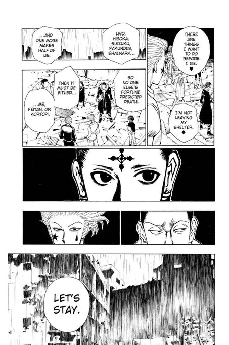 Remember Hisoka said to Kurapika “is NOT like we’re getting married just some give & take” now Illumi said he and Hisoka HAD a “give and take” before but now they’re married in conclusion idk what they’re doing but Togashi is cooking something with HisoIllu this arc 🙂↕️
