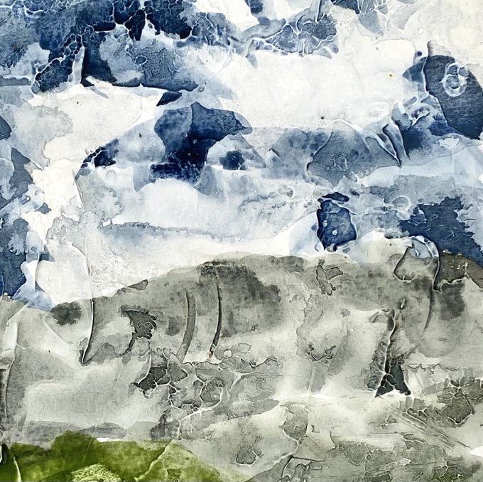 Experimental watercolours with grano medium over Gesso. Mmm... Sky’s with drama.