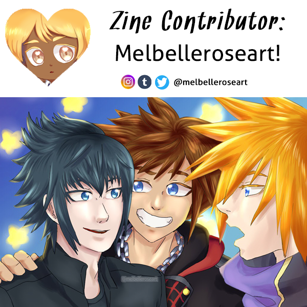 Check out another lovely artist for the zine! Melbelleroseart will be creating for Riku/Namine and Vanitas/Kairi. See some of her work here, and check her out on Twitter, Instagram, and Tumblr @melbelleroseart