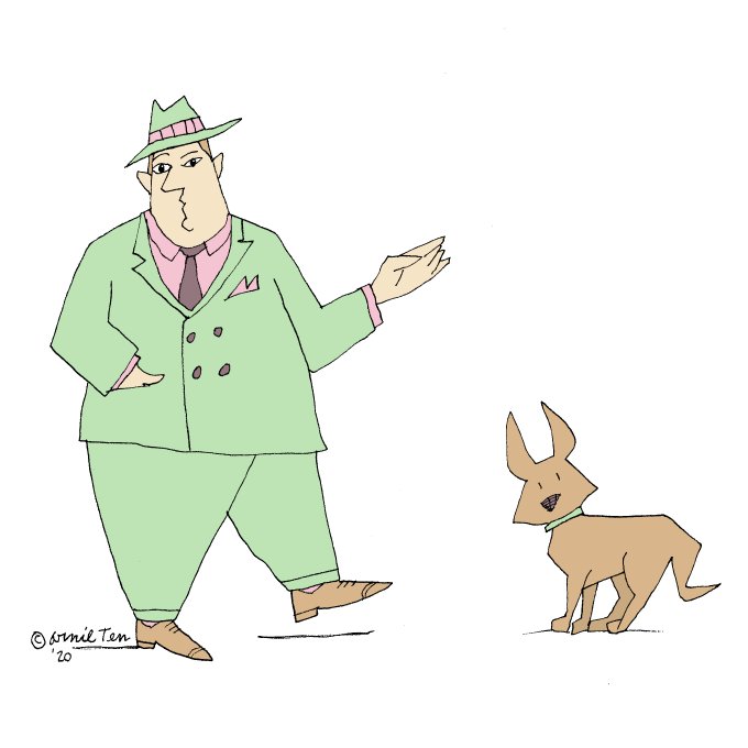 A dapper gent and his dog for this week's #colour_collective. #Pinkmadderlake #corgi #illustration #dog #sketchbook #hereslookingatyou