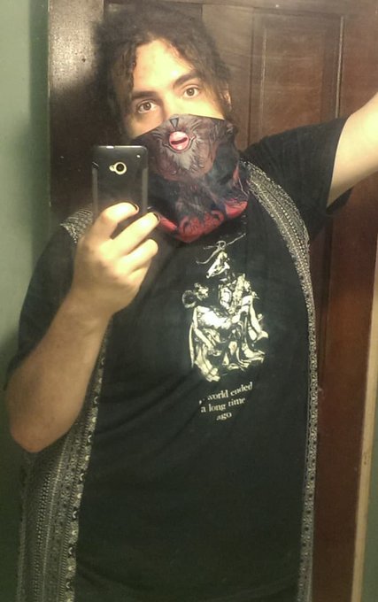 Moving on, my oc Gio is a closeted bisexual comic artist who lives in Washington. He’s a theistic Luciferian and actively practices witchcraft. He’s outwardly unfriendly and shy but is inwardly very gentle and sweet. He likes heavy metal and homoerotic barbarian content. 💀🐺👿🍔